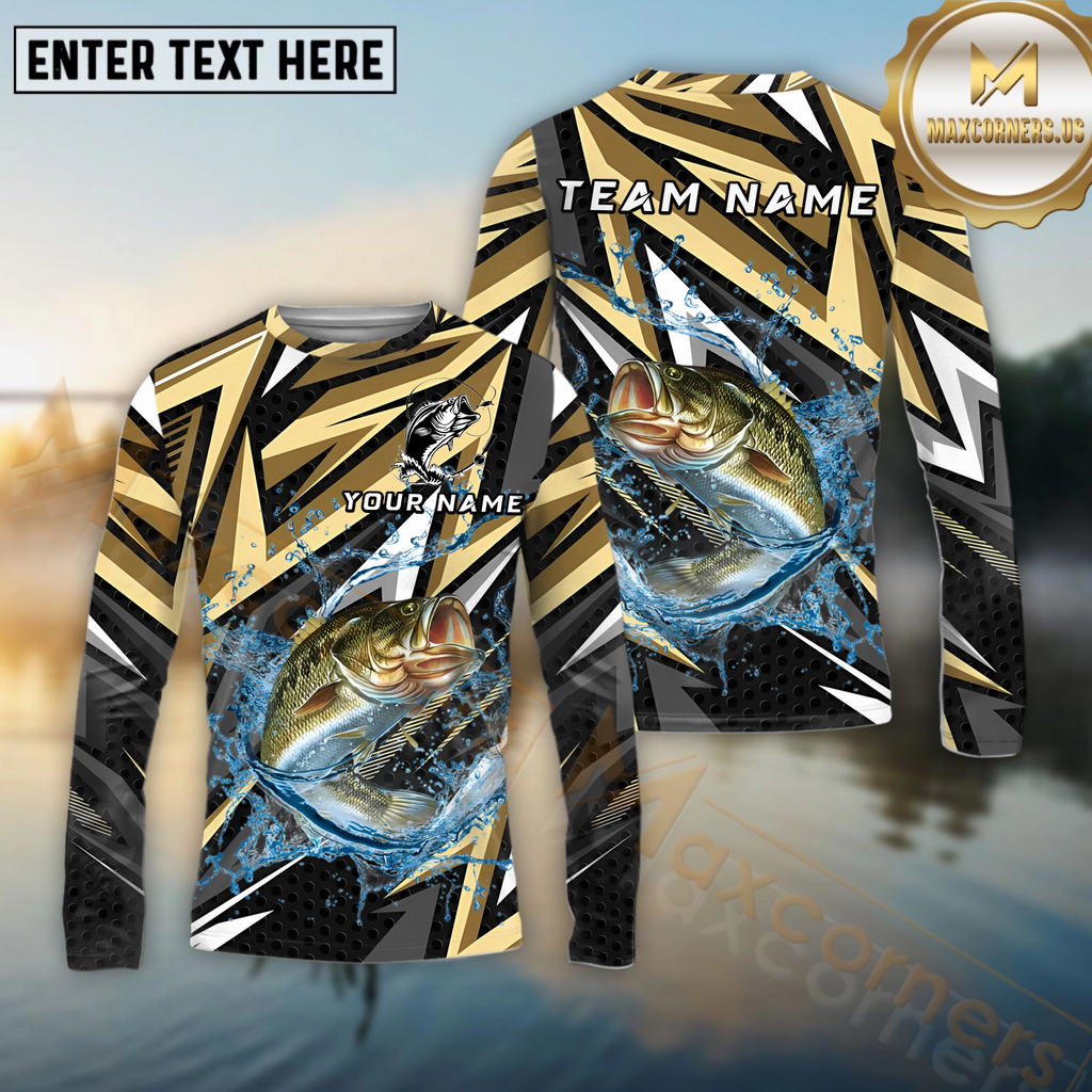 Maxcorners Bass Fishing Golden Line Jerse Pattern Sport Jersey Personalized Name, Team Name Long Sleeve Shirt