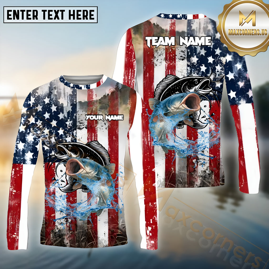 Maxcorners Catfish Fishing Freedom Strike Pattern Sport Jersey Personalized Name, Team Name Long Sleeve Shirt