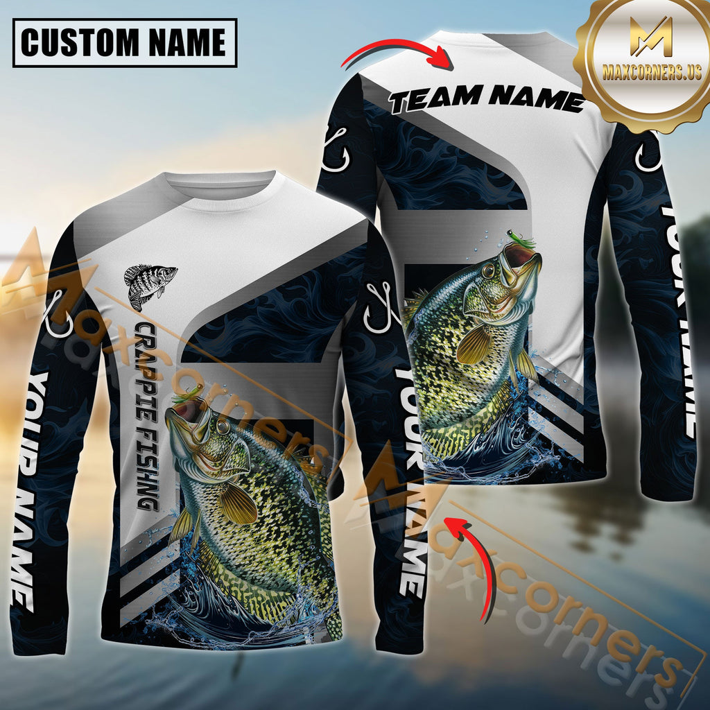 Maxcorners Crappie Fishing Blue Deep Wave Hook Personalized Name, Team Name Long Sleeve Shirt