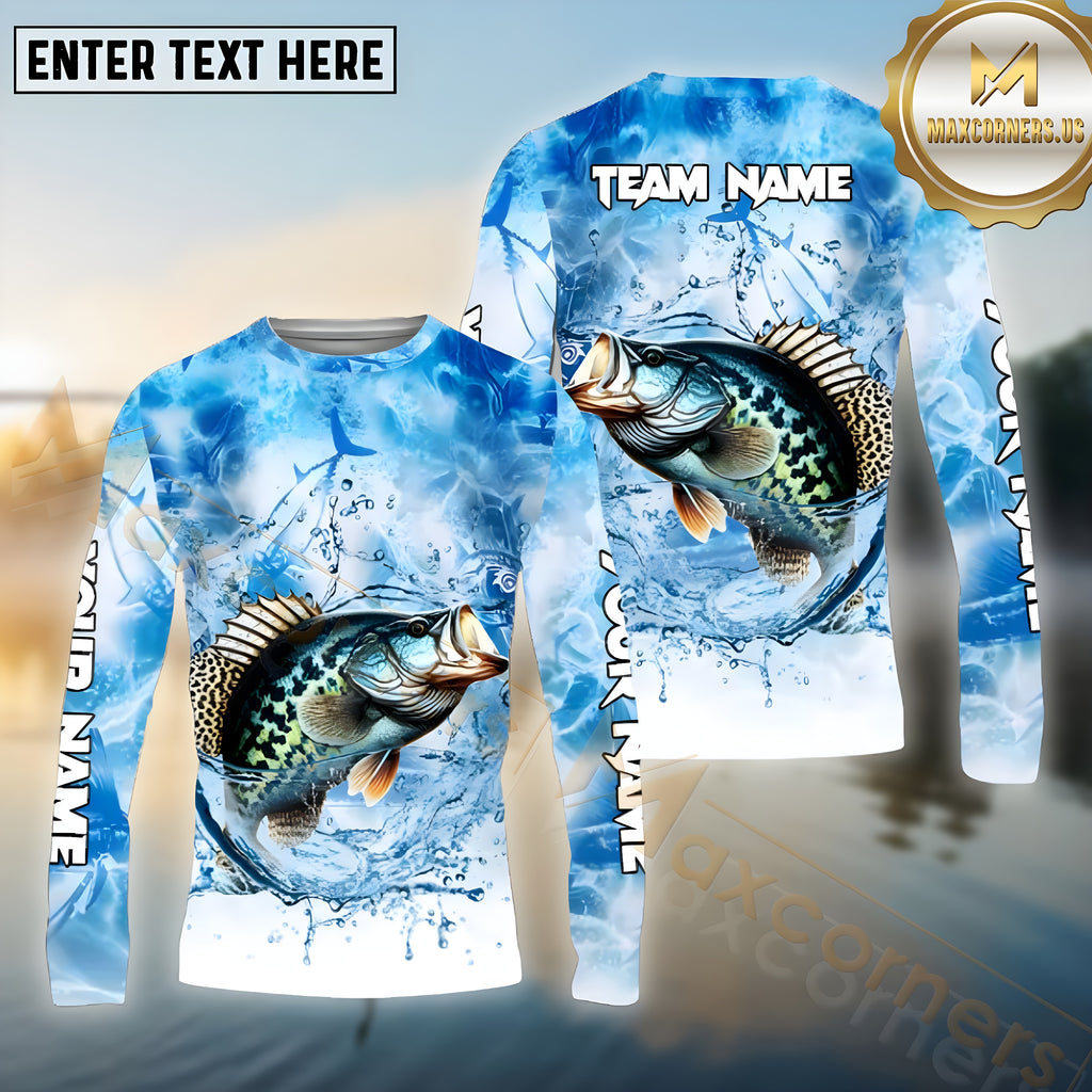 Maxcorners Crappie Fishing Blue Fire Sea Effect Pattern Sport Jersey Personalized Name, Team Name Long Sleeve Shirt