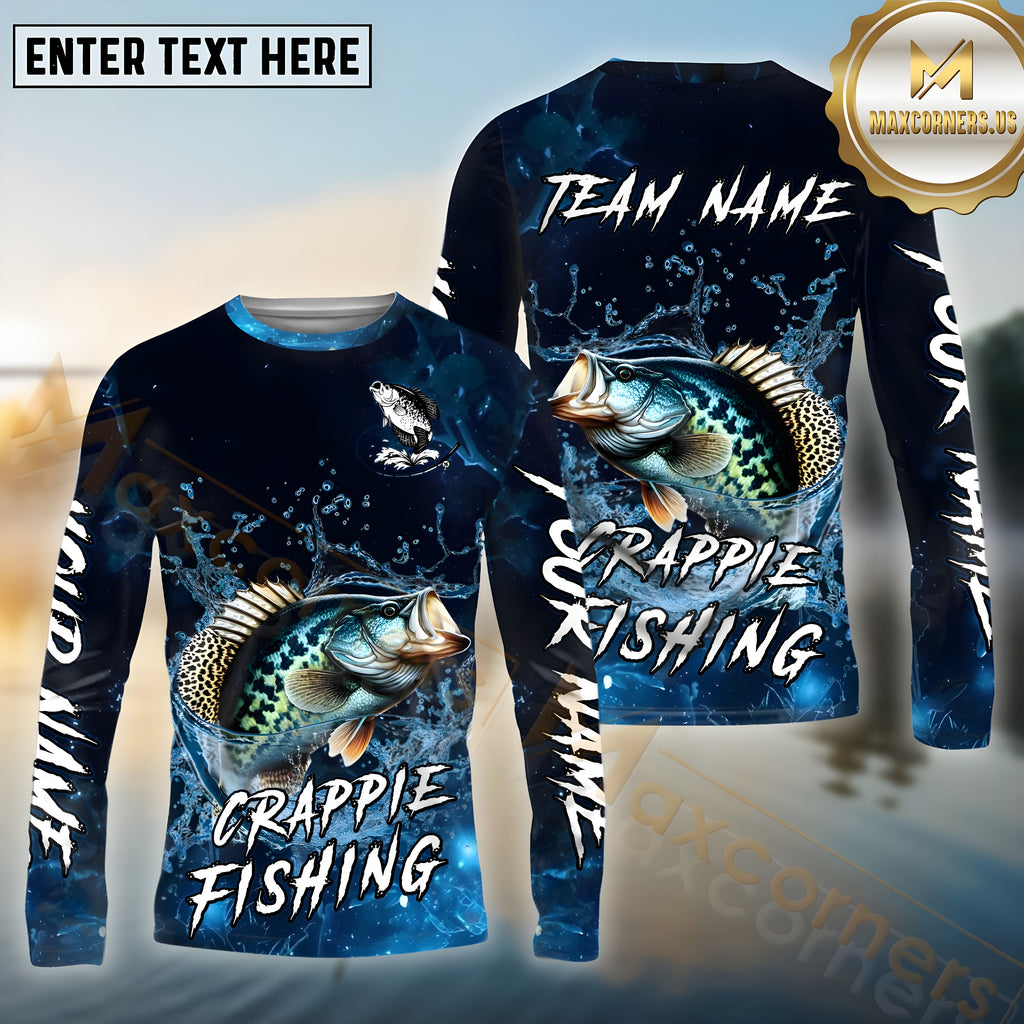 Maxcorners Crappie Fishing Blue Splash Water Effect Pattern Sport Jersey Personalized Name, Team Name Long Sleeve Shirt