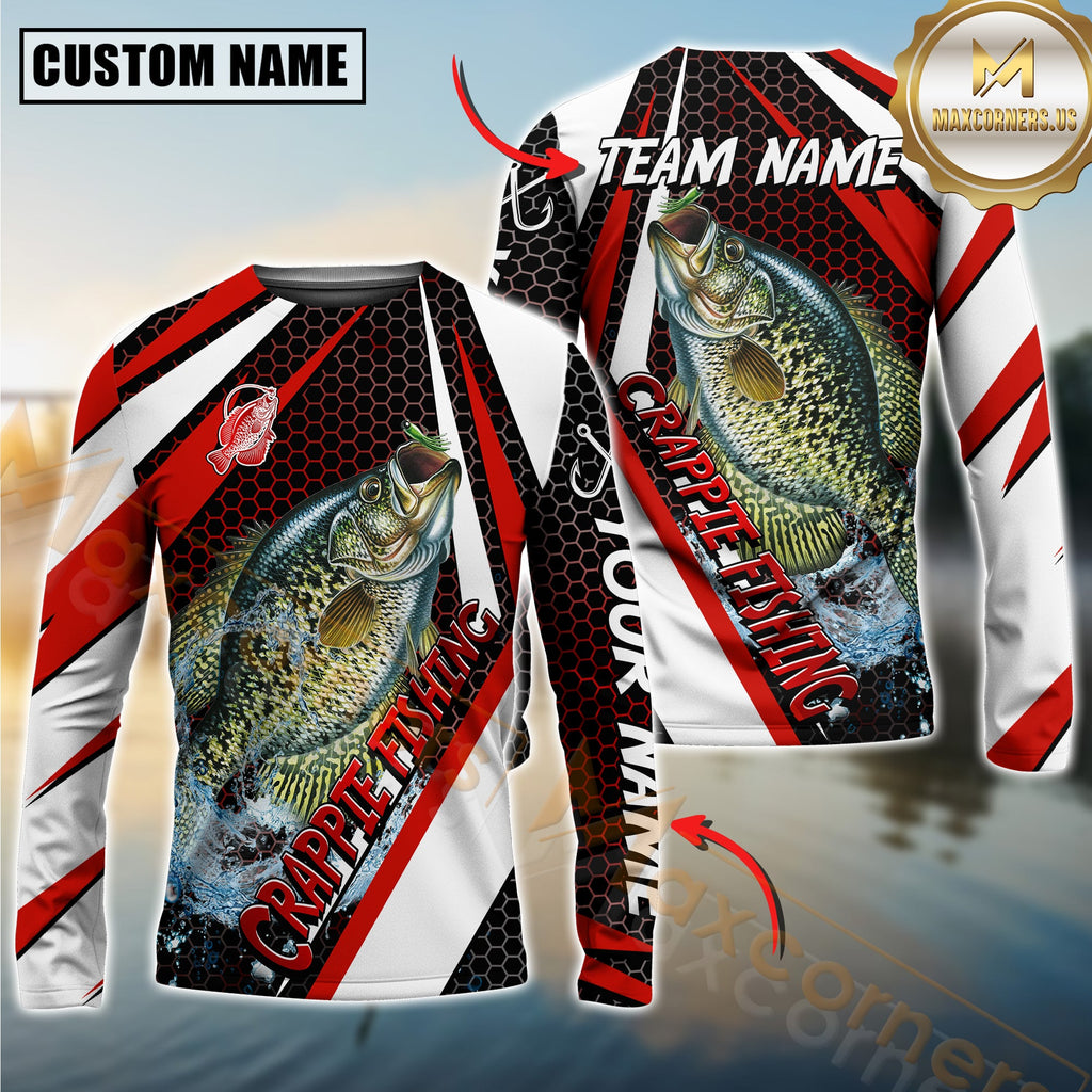 Maxcorners Crappie Fishing White Red Edge Personalized Name, Team Name Long Sleeve Shirt