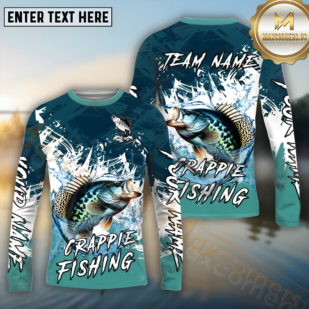 Maxcorners Crappie Fishing Wild Water Splash Pattern Pattern Sport Jersey Personalized Name, Team Name Long Sleeve Shirt