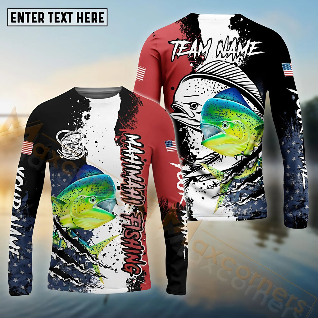 Maxcorners Mahi Mahi Fishing Paint Scratch American Flag scratch Sport Custom Name & Team Name 3D Shirts
