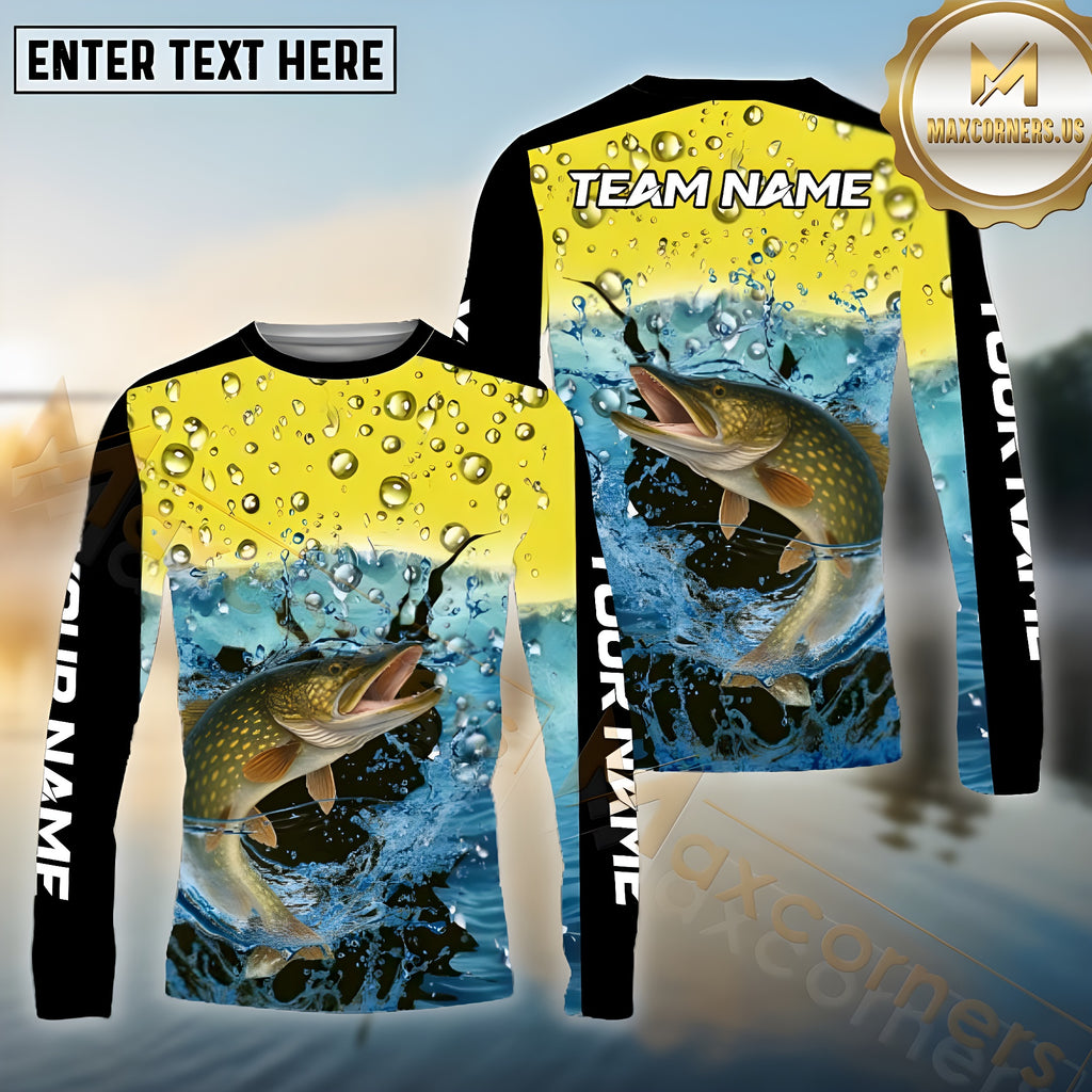 Maxcorners Pike Fishing Aqua Surge Pattern Sport Jersey Personalized Name, Team Name Long Sleeve Shirt