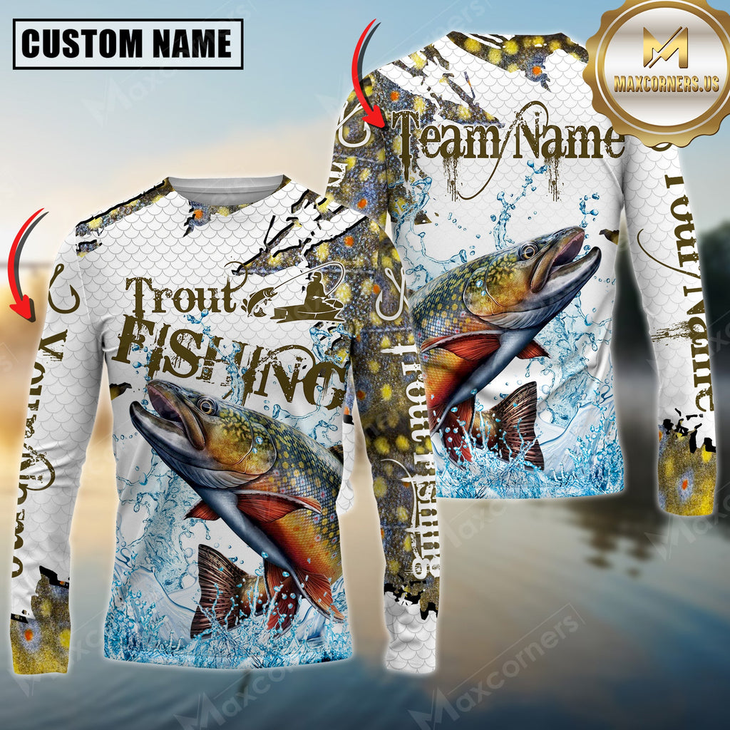Maxcorners Trout Fishing Big Catch Splash Personalized Name, Team Name 3D Long Sleeve Shirt