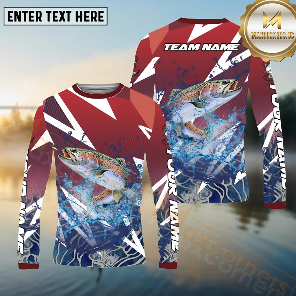 Maxcorners Trout Fishing Red Fury Pattern Sport Jersey Personalized Name, Team Name Long Sleeve Shirt