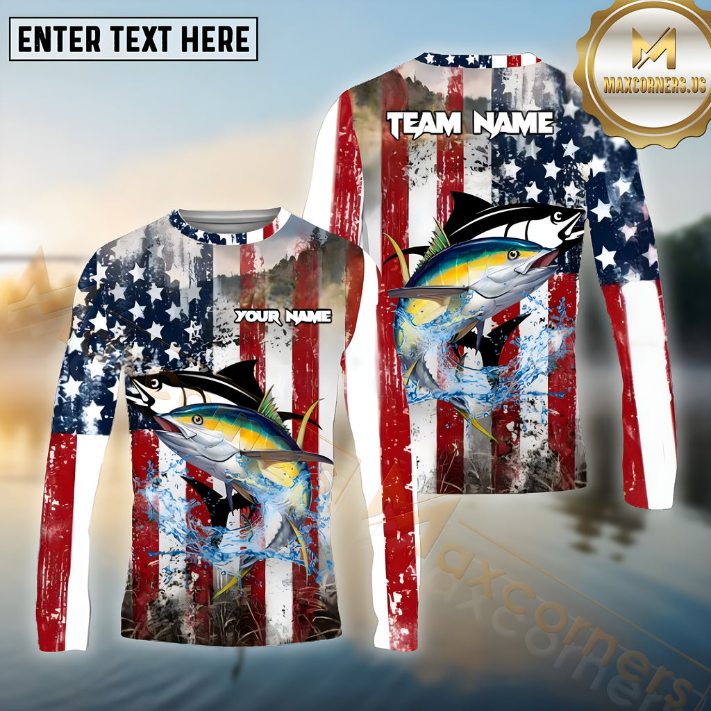 Maxcorners Tuna Fishing Freedom Strike Pattern Sport Jersey Personalized Name, Team Name Long Sleeve Shirt