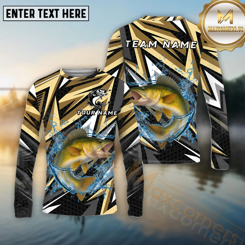 Maxcorners Walleye Fishing Golden Line Jerse Pattern Sport Jersey Personalized Name, Team Name Long Sleeve Shirt