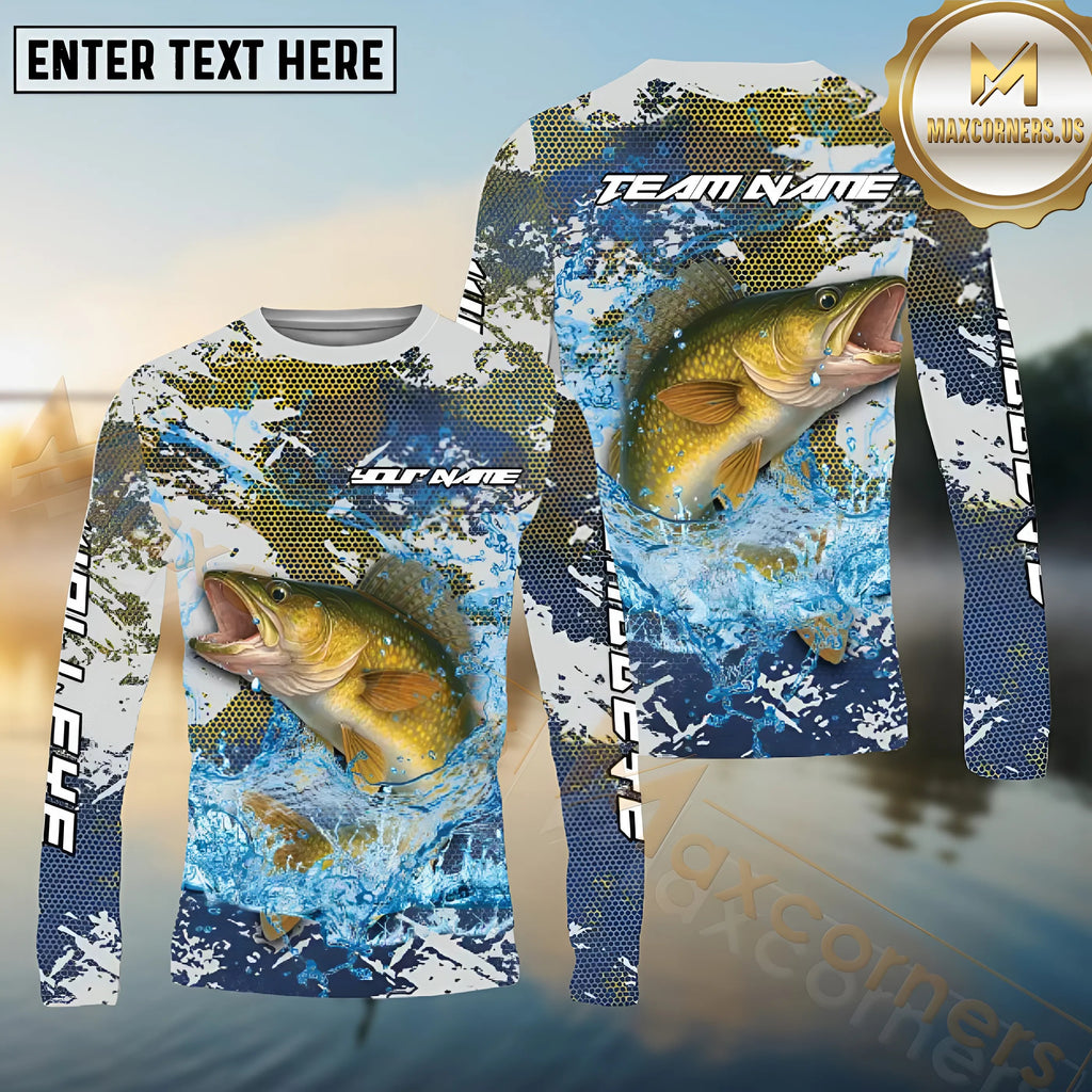 Maxcorners Walleye Fishing White Hooked on Victory Personalized Name, Team Name Long Sleeve Shirt