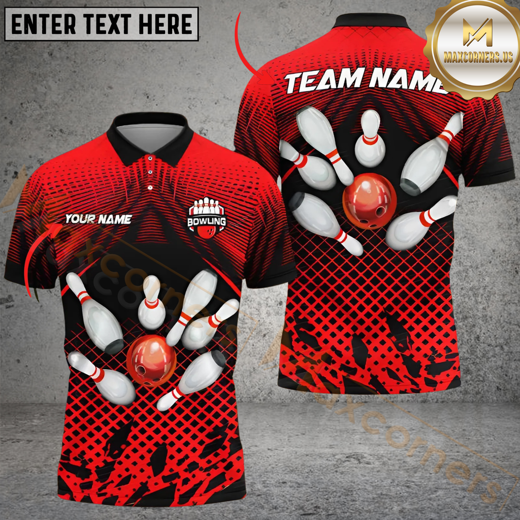 Maxcorners Bowling Strike Multicolor Personalized Name, Team Name 3D Shirt