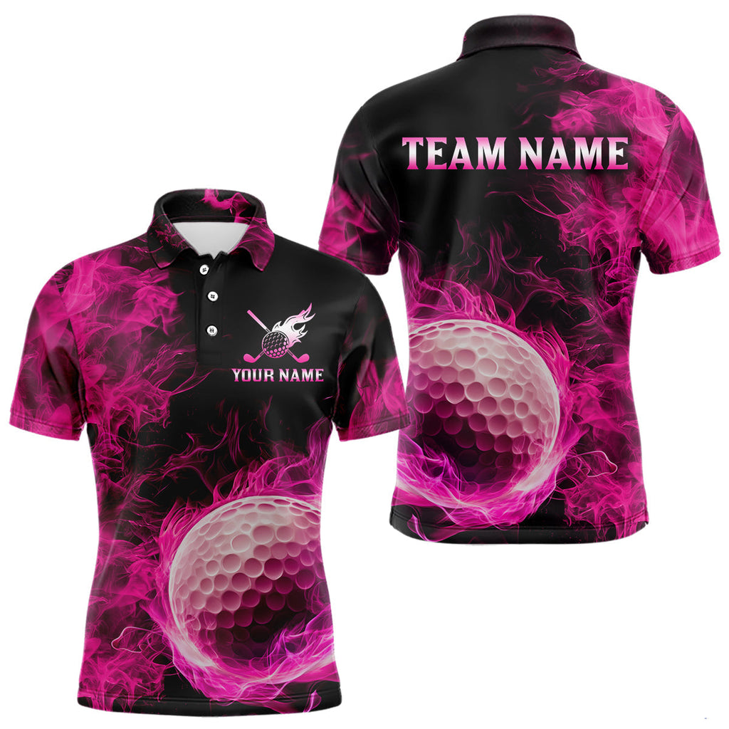 Maxcorners Black and Pink Flame Golf Ball Mens Golf polo shirts custom name golf outfit for men golf clothes