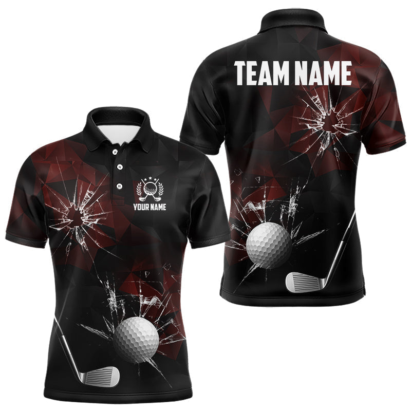 Maxcorners Black and Red Camo Broken golf ball Mens Golf polo shirts Custom Team Golf attire for men MT2108