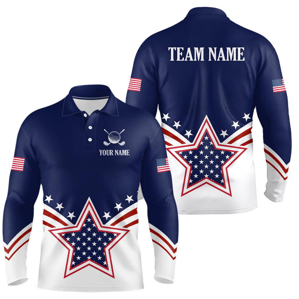 Maxcorners Custom Patriotic Golf Polo Shirt White and Blue Golf Shirts for Men Women TeamMT0306