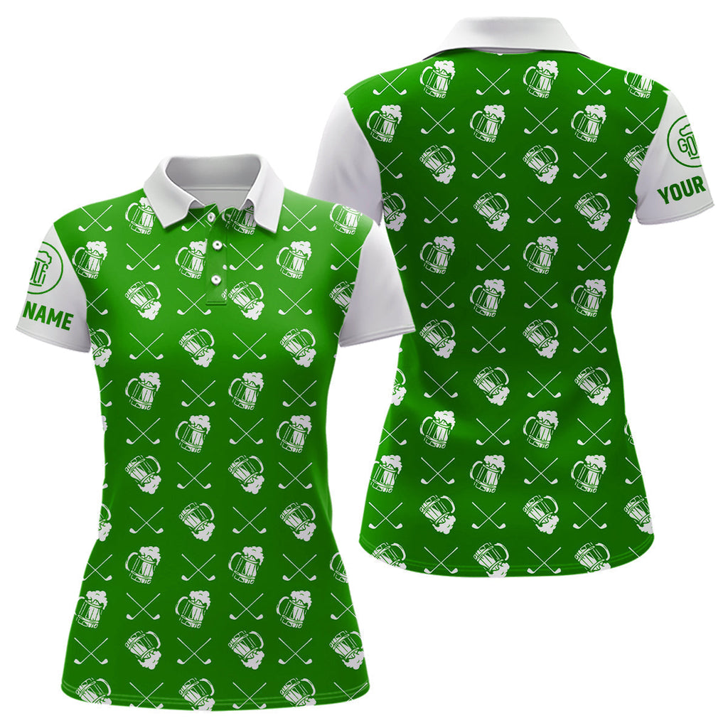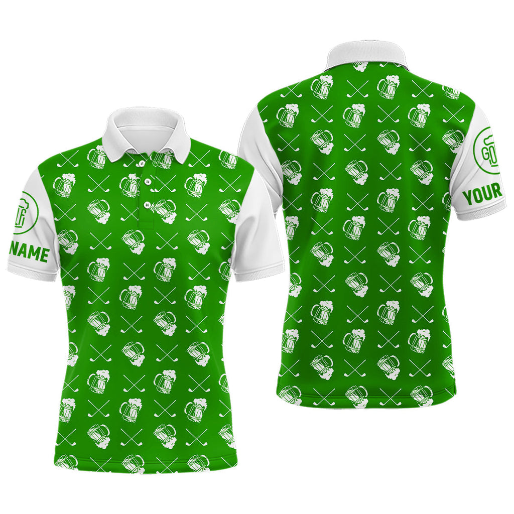 Maxcorners Green and white golf pattern Mens Golf polo shirts custom name golf beer outfit men golf