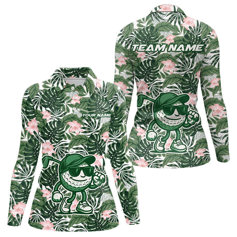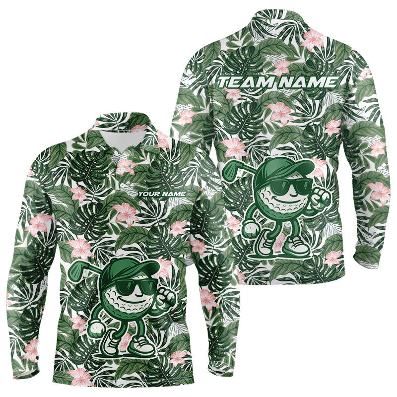 Maxcorners Green tropical leaf pattern pink flower funny Golf polo shirts For Men Custom mens golf outfitsMT0306