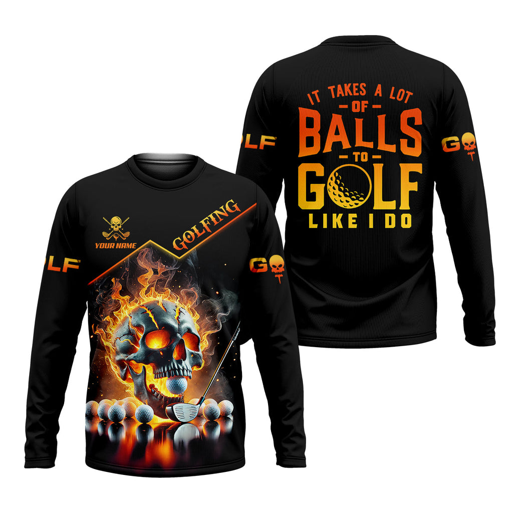 Maxcorners It Takes A Lot Of Balls To Golf Like I Do Custom Men's Golf Polo Shirt, Skull Golf Shirt, Funny Golf Shirt