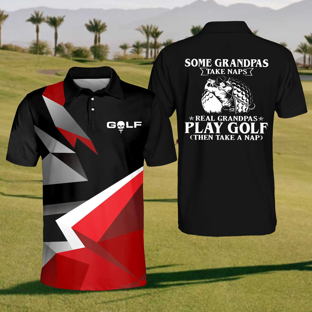 Maxcorners Some Grandpas Take Naps Real Grandpas Play Golf Mens Golf Polo Shirt, Mens Golf Gift, Golf Lover Gift