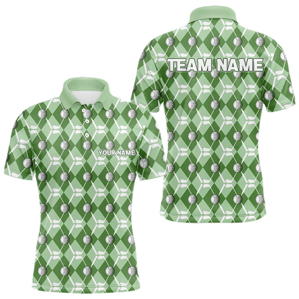 Maxcorners Mens golf polo shirts custom green argyle plaid pattern golf attire for men, golfer gifts MT2108