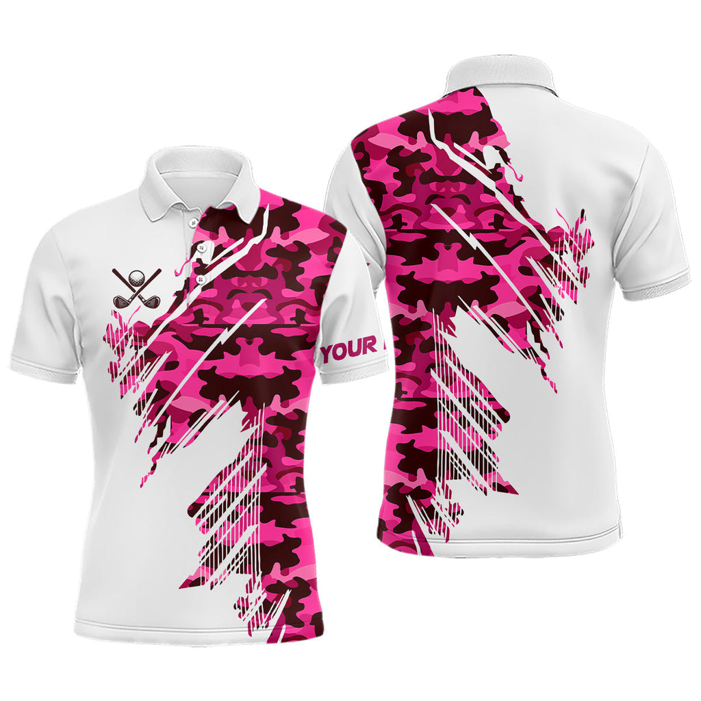 Maxcorners Personalized Mens golf polo shirts custom white and pink camo mens golf apparel, golfing gifts LM2707