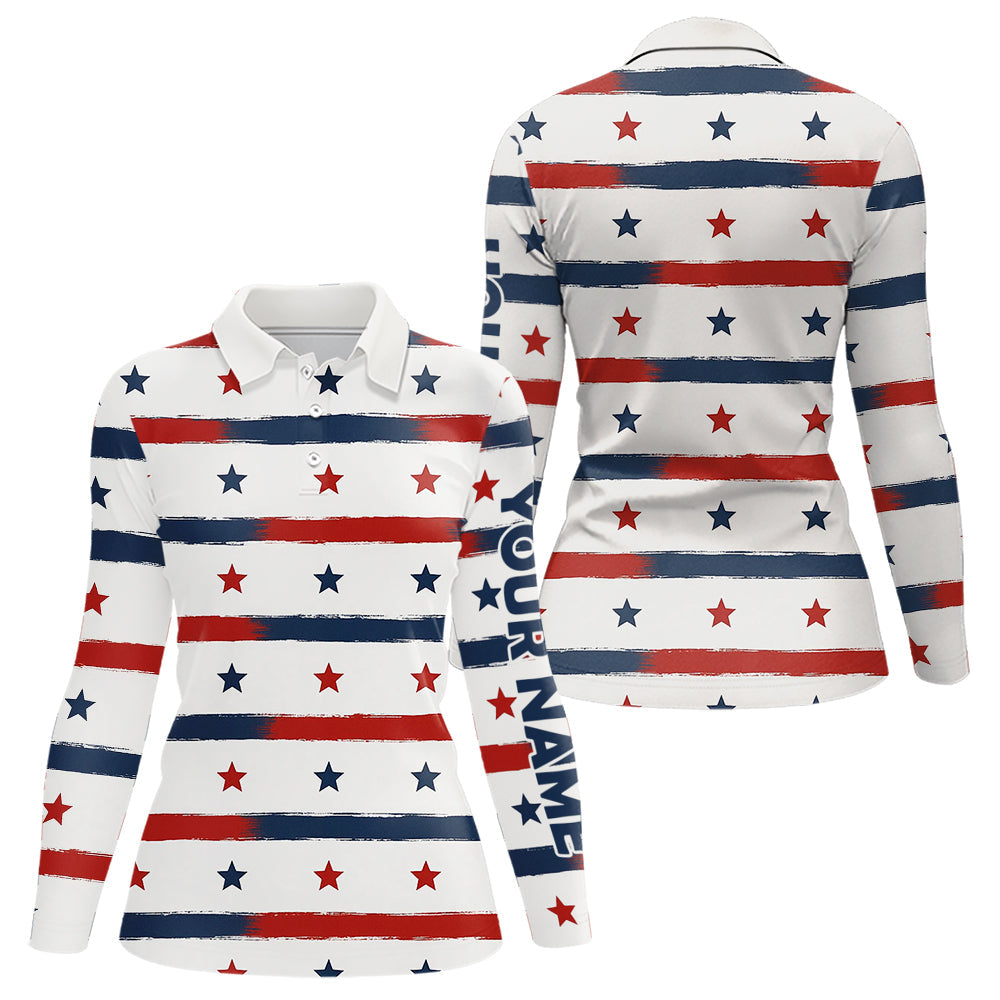 Maxcorners Red, White and Blue stars pattern Men golf polo shirts Custom patriotic golf attire for mens