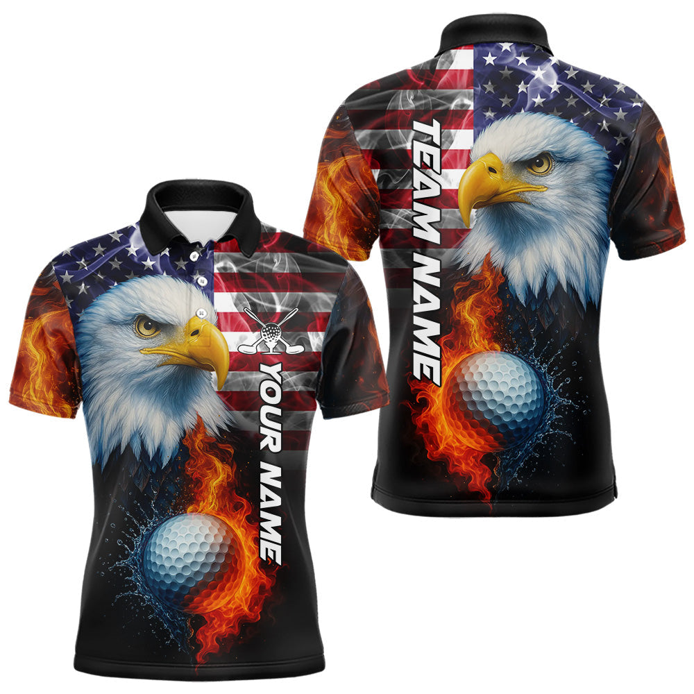 Maxcorners Smoke American Flag Eagle Fire and water Golf polo shirt for Men Custom patriotic Team Mens golf top LM0803