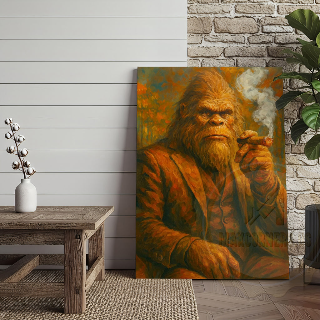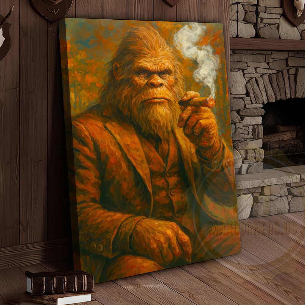 Maxcorners Bigfoot Smoking Cigar Rustic Lodge Wall Art Wrapped Canvas