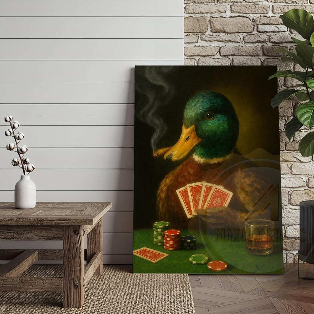 Maxcorners Duck Smoking Cigar Playing Poker Rustic Bar Art Wrapped Canvas