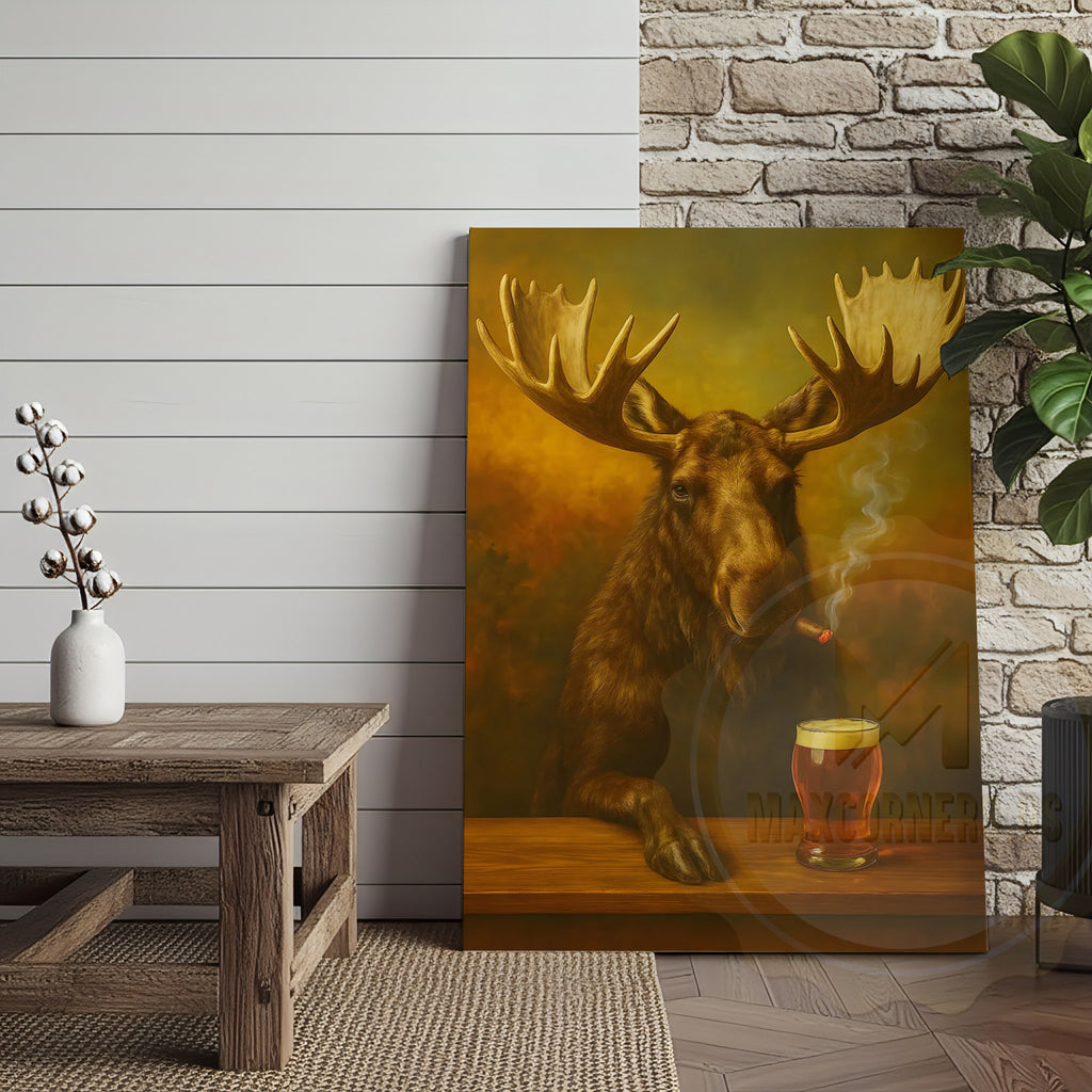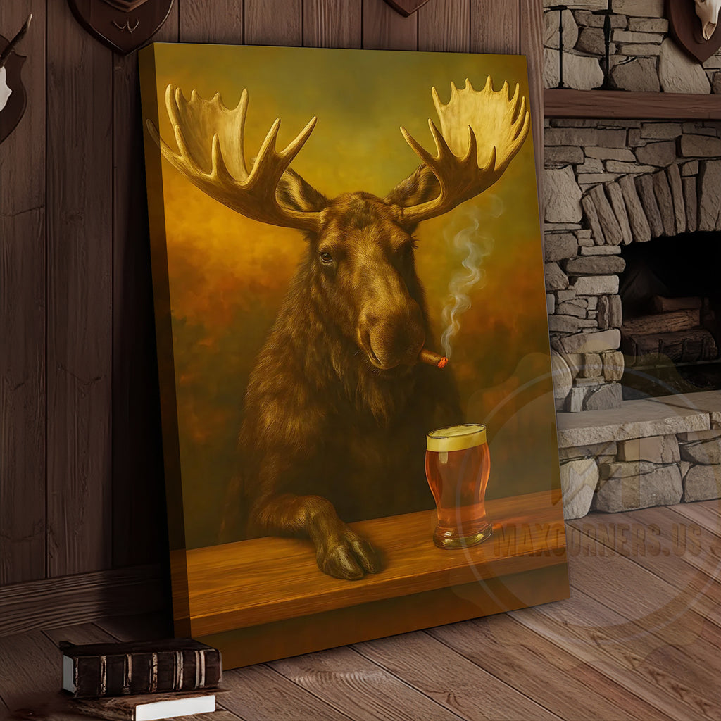 Maxcorners Moose Smoking Cigar with Beer Rustic Lodge Bar Art Wrapped Canvas