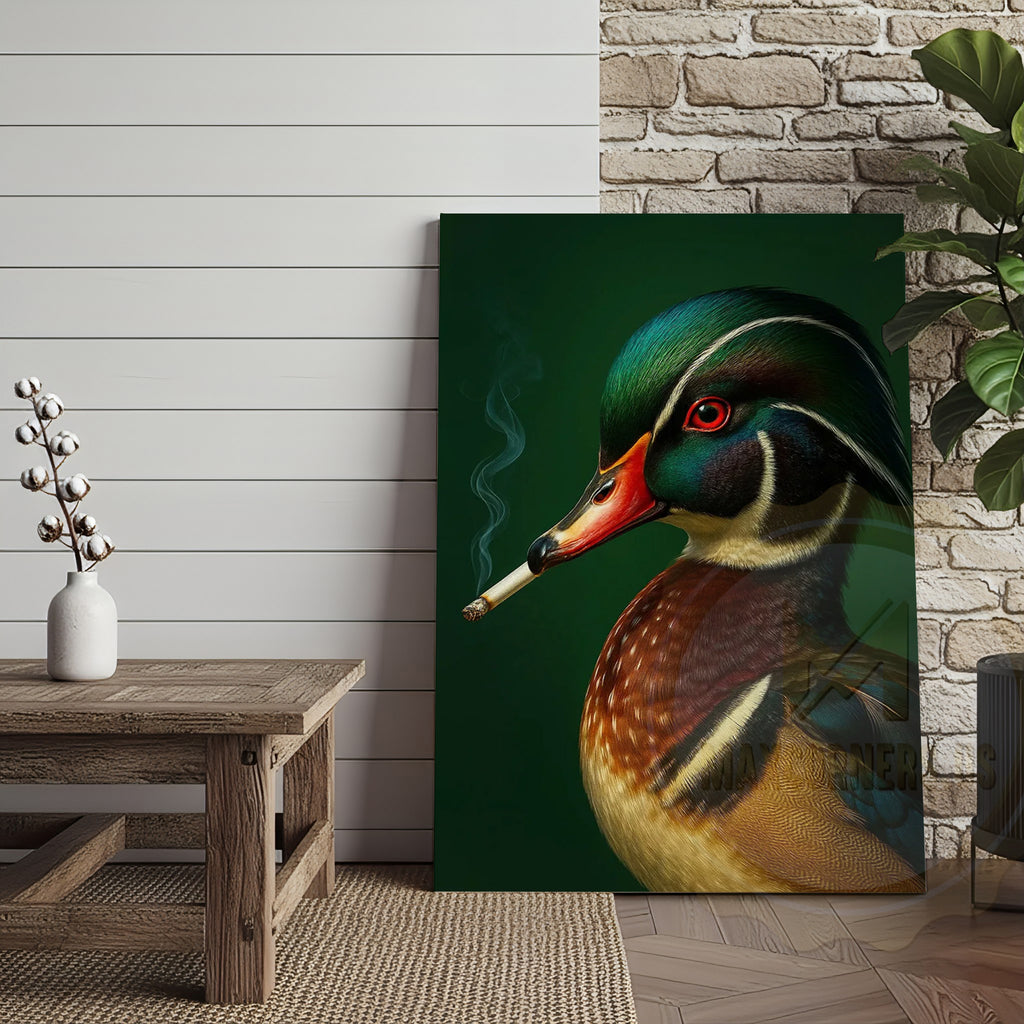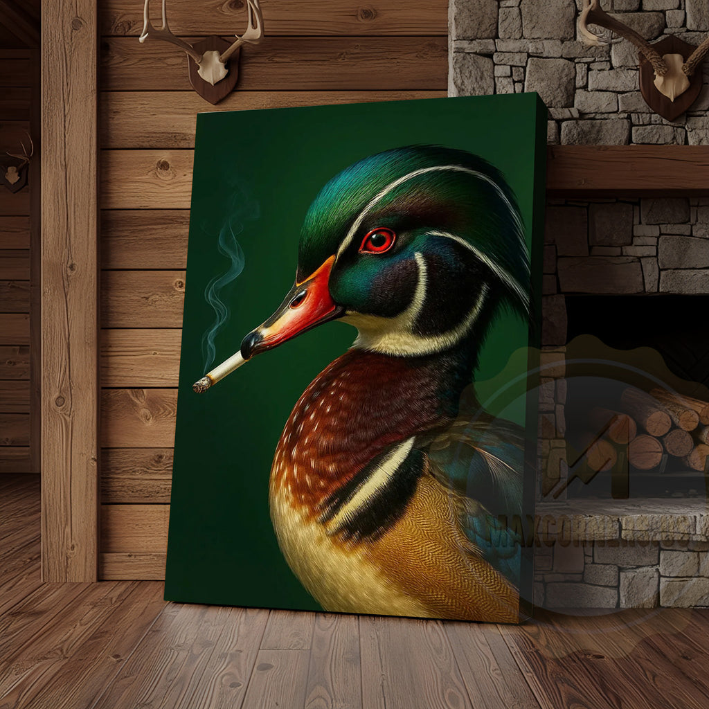 Maxcorners Smoking Duck Portrait Rustic Farmhouse Art Wrapped Canvas