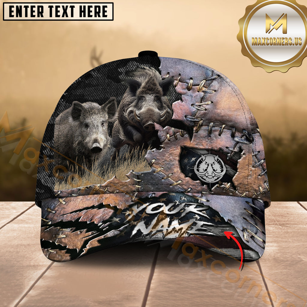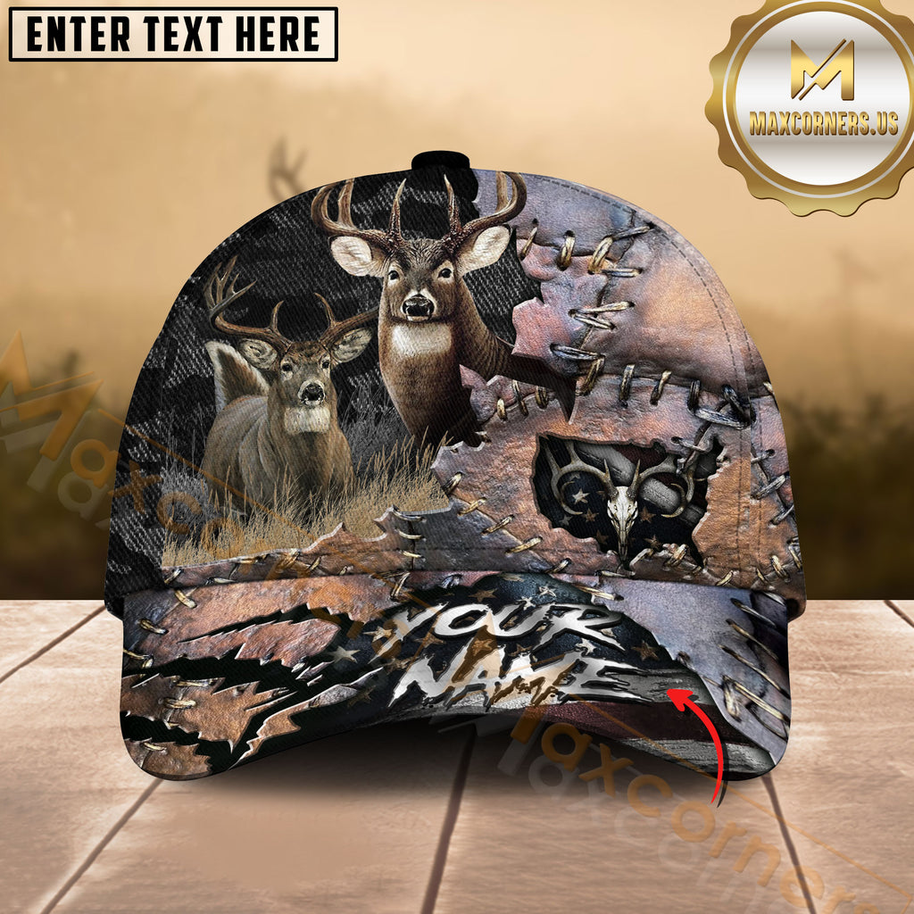 Maxcorners Hunting Leather Patch Ripped Style 3D Personalized Name 3D Cap (Deer/Moose/Boar/Bear)