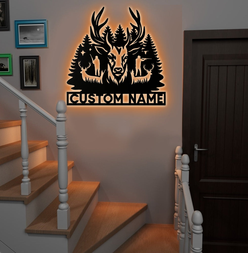 Maxcorners Personalized Deer Hunting Metal Sign WITH LED/WITHOUT LED – Rustic Cabin Wall Decor, Gift for Hunters LM0110