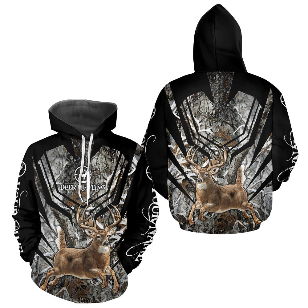 Maxcorners Whitetails Jumping Deer Hunting Camouflage Custom Name Shirts, Best Deer Hunting Camo Winter LM0910