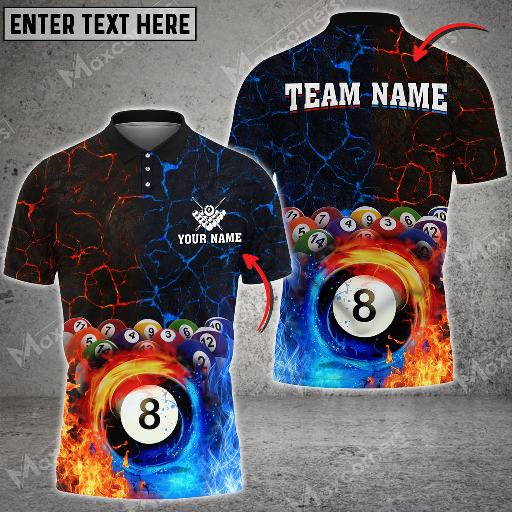 Maxcorners Billiards 8 Ball Water And Fire Personalized Name 3D Shirt