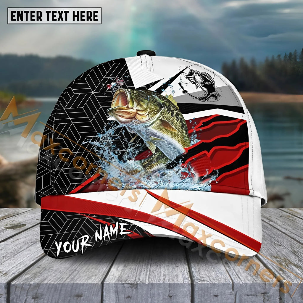 Maxcorners Bass Fishing Red White Pattern Sport Pattern Personalized Name 3D Cap MT173