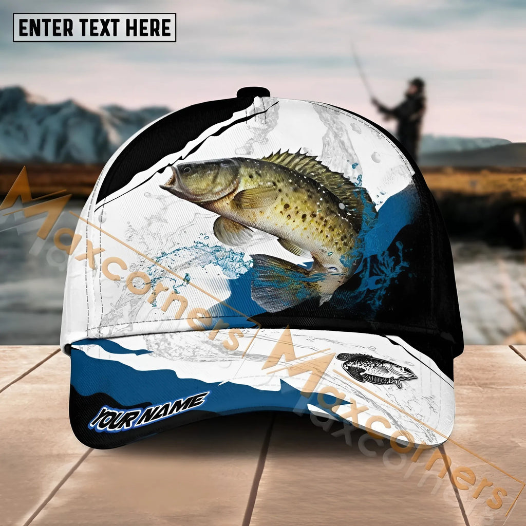 Maxcorners Crappie Fishing Black White Water Flow Pattern Sport Pattern Personalized Name 3D Cap MT173