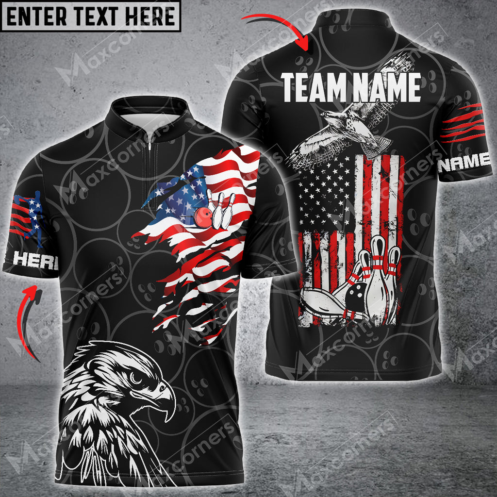 Maxcorners Eagle American Flag Bowling Jersey Personalized Name, Team Name 3D Shirt