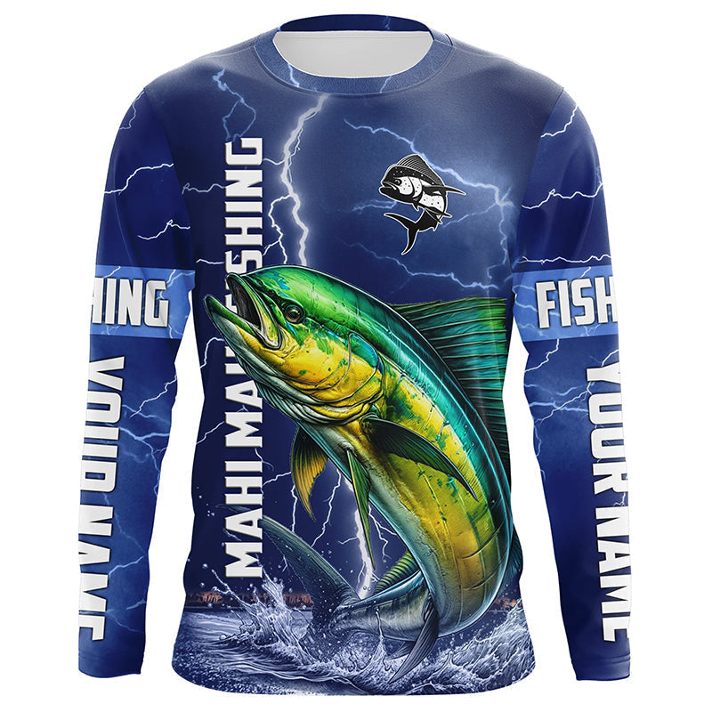 Maxcorners Mahi Mahi Fishing blue lightning jerseys custom performance Long Sleeve tournament fishing shirts MT2108