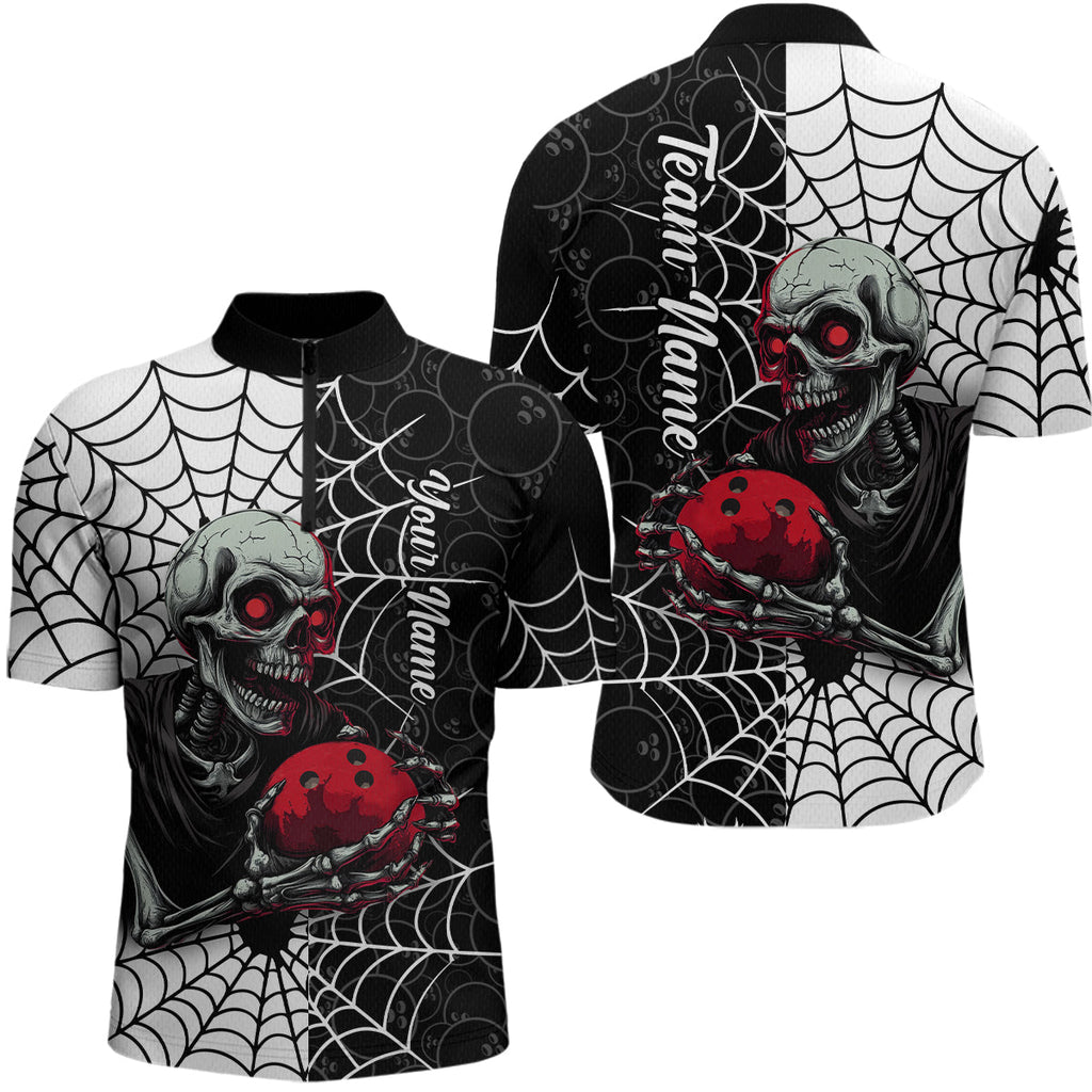 Maxcorners Black and White Skull Bowling Team Shirt Custom Spider Bowling Jersey Men Halloween Bowling Outfit LM0409