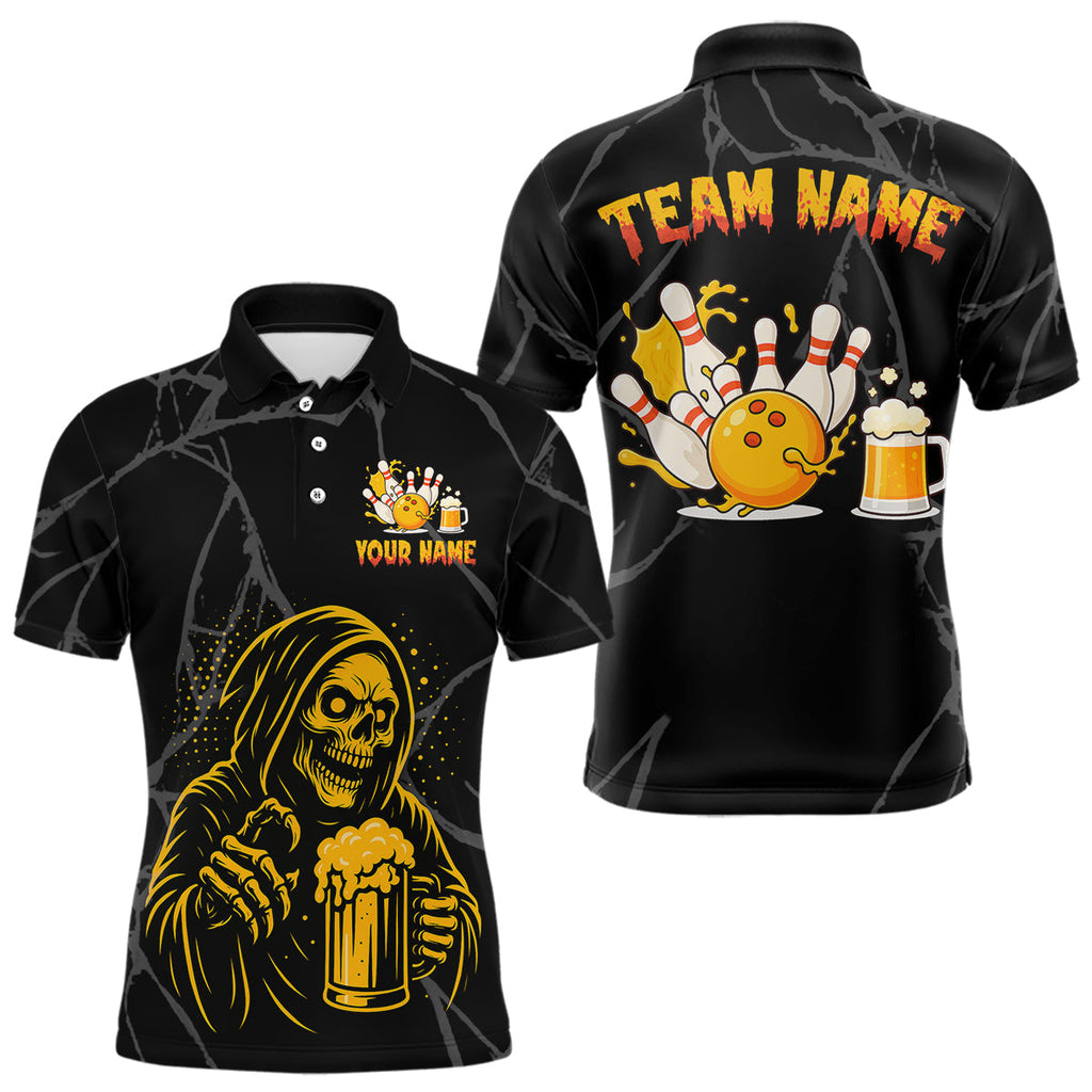 Maxcorners Bowling And Beer Custom Skull Bowling Shirts For Men, Halloween Bowling Outfits LM2408