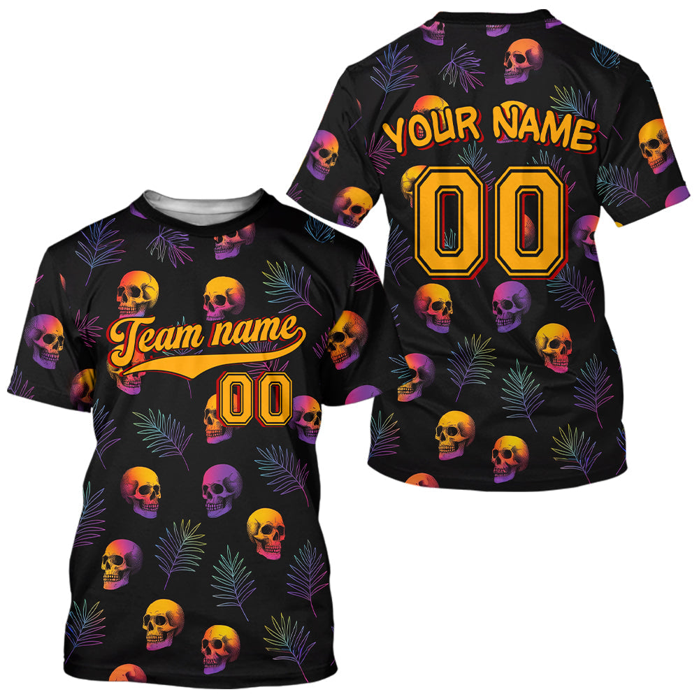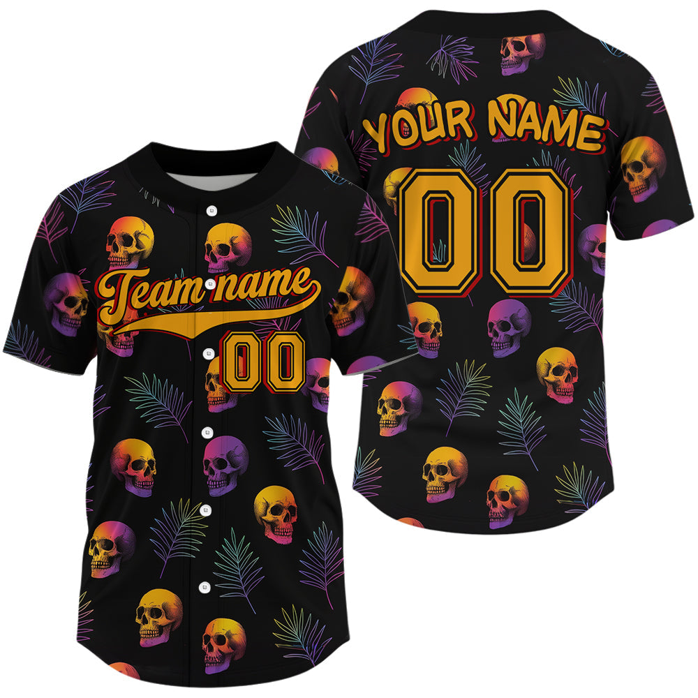 Maxcorners Custom Black And Yellow Skull Baseball Halloween T-Shirt For Men Skull Baseball Shirts LM1809