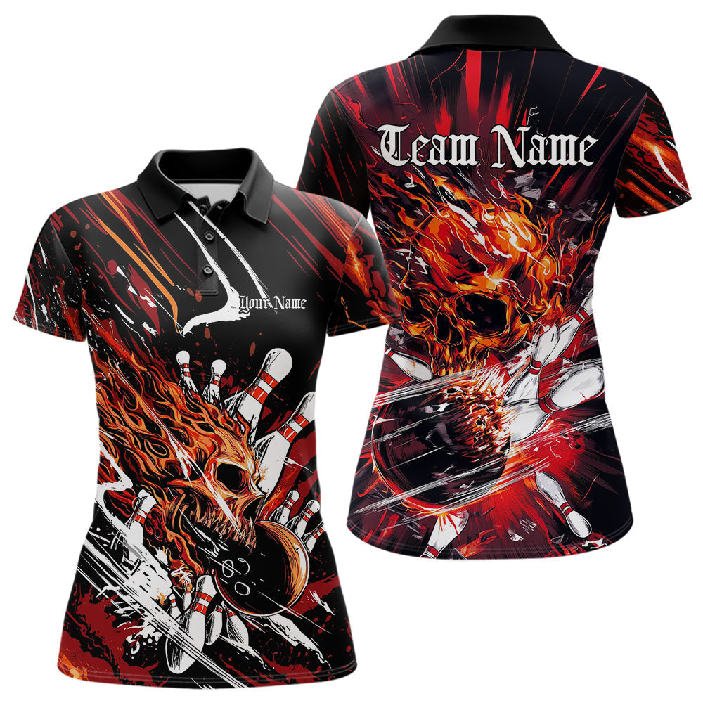 Maxcorners Custom Flame Skull Bowling Team Men Polo Shirts, Fire Halloween Bowler Outfit Uniform LM2707