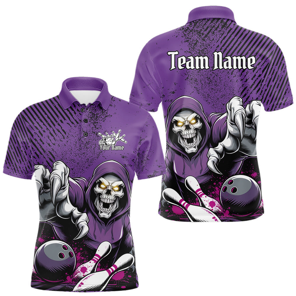 Maxcorners Custom Purple Splatter Skeleton Grim Reaper Bowling Men Polo Shirts, Halloween Outfits MT2009