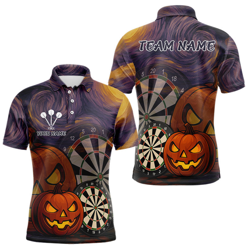 Maxcorners Pumpkin Dartboard 3D Custom Halloween Funny Darts Polo Jerseys For Men, Darts Shirt LM2707