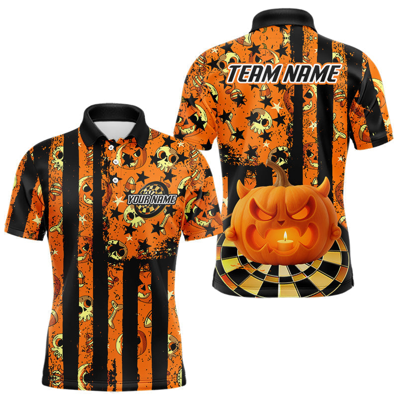 Maxcorners Pumpkin & Dartboard Custom Funny Halloween Dart Polo Shirts For Men, Dart Team Jerseys 1 LM2707