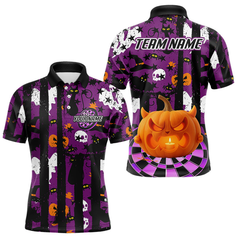 Maxcorners Pumpkin & Dartboard Custom Funny Halloween Dart Polo Shirts For Men, Dart Team Jerseys LM2707