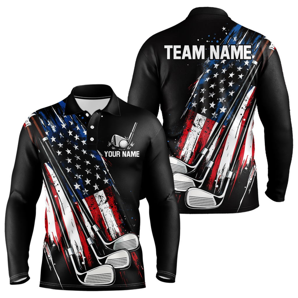Maxcorners Black American Flag Golf Clubs Mens Golf polo shirts custom team name patriotic golf outfit for men & women