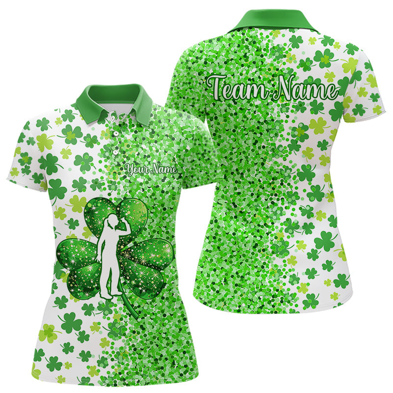 Maxcorners Green Glitter Shamrock Clover Darts Shirts For Men Custom St Patrick Day Darts Team Jersey