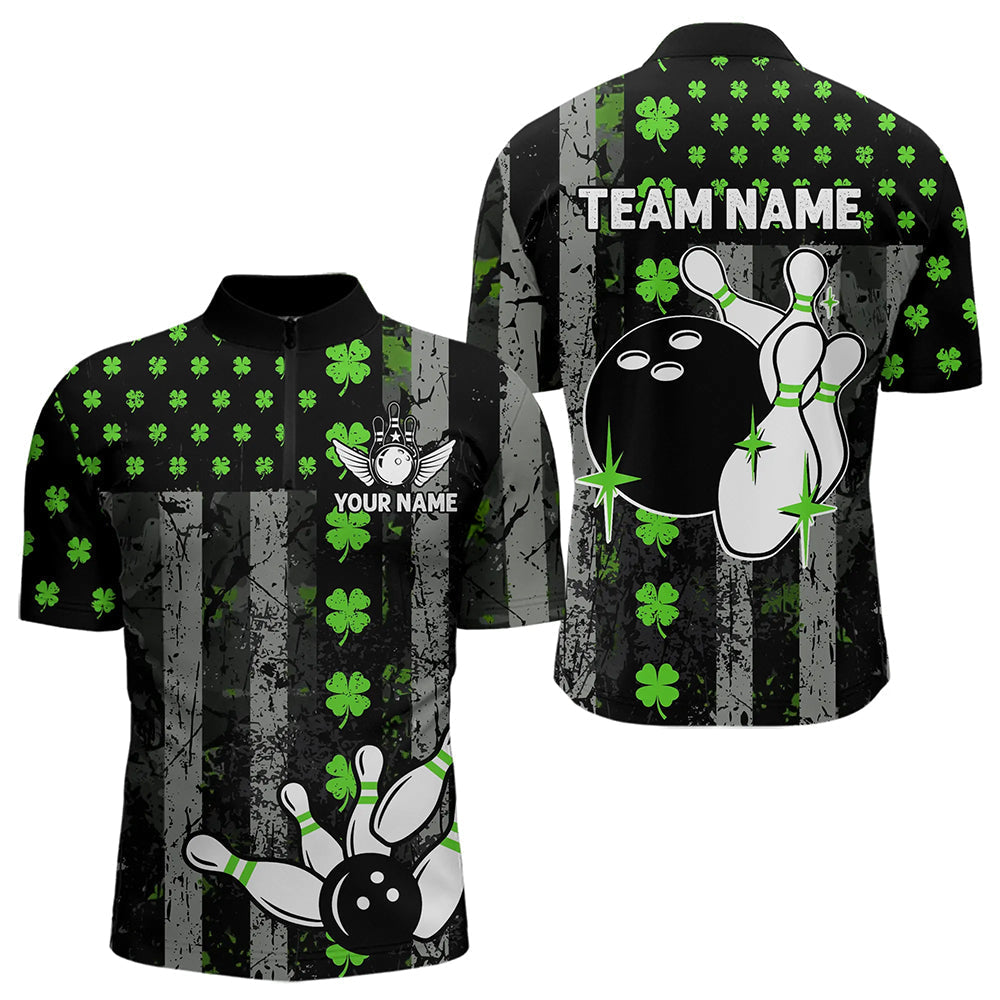 Maxcorners Green Shamrock Grunge Us Flag Patriotic Bowling Shirts For Men And Women Custom St Patrick Day Bowling Jersey