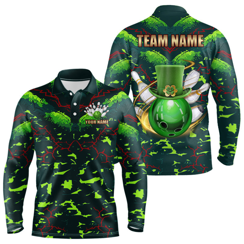 Maxcorners Personalized Green Camo Bowling Polo, 1/4 Zip Shirts For Men Custom St Patrick Day Bowling Team Jersey